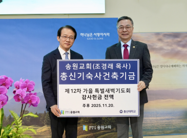 송원교회, '가을 특별새벽기도회' 감사헌금 전액 총신대 기숙사건축기금으로 쾌척