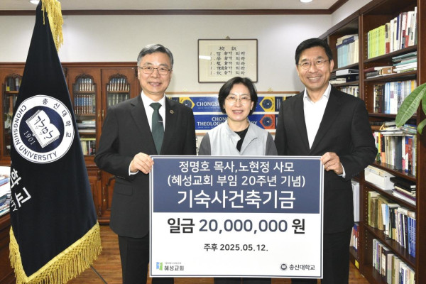 이에 대해 박성규 총장은 “귀한 뜻을 담아 학교에 보내주신 사랑에 깊이 감사드립니다”라며, “기숙사 신축을 통해 학생들의 생활 여건을 크게 향상시키고, 나아가 한국교회와 세계교회를 섬기는 신실한 하나님의 일꾼을 양성하는 데 최선을 다하겠습니다”라고 감사의 인사를 전하였습니다.