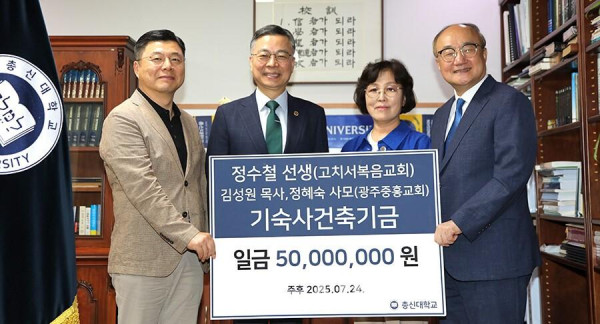 2025년 7월 24일에는 광주중흥교회 김성원 목사와 정혜숙 사모가, 정 사모의 오빠인 고(故) 정수철 교수(일본 고치서복음교회) 이름으로 총신대에 5000만원을 후원했다.